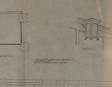 The home’s interior is carefully and richly detailed; however, the ornamentation is always integrated into the overall design. The Museum’s collection includes some architectural drawings for the home. Careful study, reveals a number of changes as the design for the home was being developed. One includes a pencil notation for changing the brick fireplace facing to tile – almost certainly the tile that was used was from Pewabic Pottery in Detroit.
