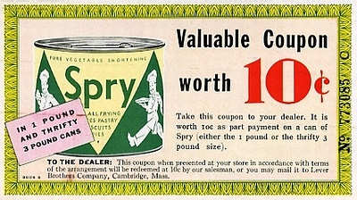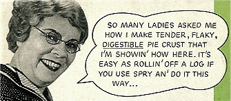 In 1936, the Lever Brothers created the advertising character of “Aunt Jenny” when they introduced Spry Vegetable Shortening to compete with Crisco.