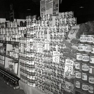 As we continued our research, we were nearly tempted by the c.1950s photographs of an Oscar Mayer display ore which accompany this article. Featuring Sack’O-Sauce in a Can’O-Meat, the installation includes a product endorsement by members of the Park and Shop staff: Reinhold Riefe, Store Manager; Bert Montiegel, Asst Manager; Eddie Fuller, Department Manager; Mary Callahan, Clerk and Harold Brown, Department Manager.