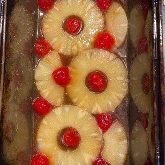 Ingredients: 2 cups ground ham (leftover) 1 ½ lb. ground fresh pork 2 eggs 1 cup milk 1cup cracker crumbs ½ teaspoon salt 1/8 teaspoon black pepper ?/4 cup brown sugar 1 teaspoon dry mustard ¼ cup vinegar 10 Maraschino cherries 6 slices pineapple